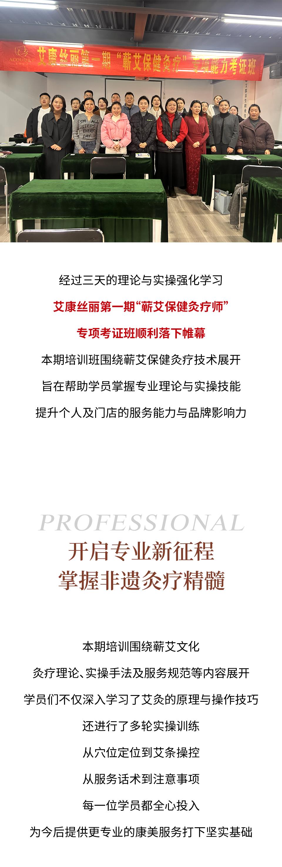 近日,艾康丝丽(ACOUSILY)品牌成功举办了第一期“蕲艾保健灸疗师”专项考证班,全体学员顺利结业。