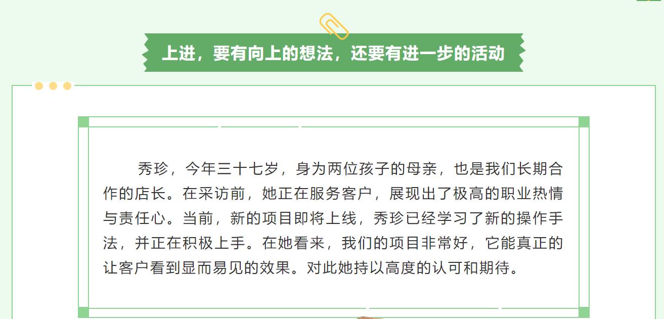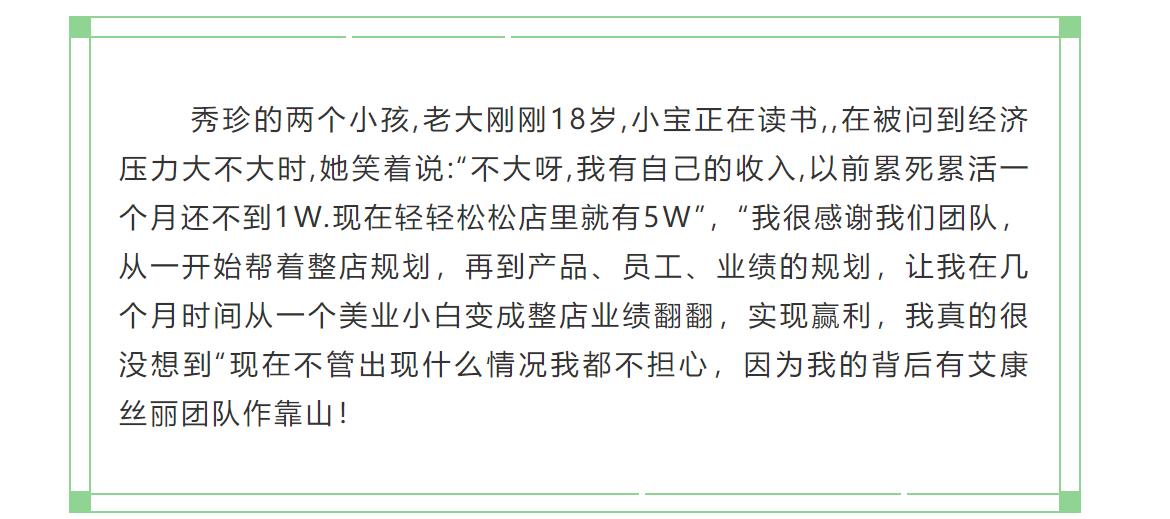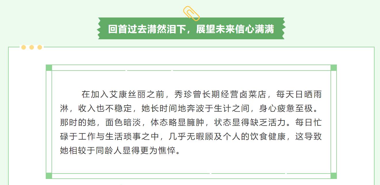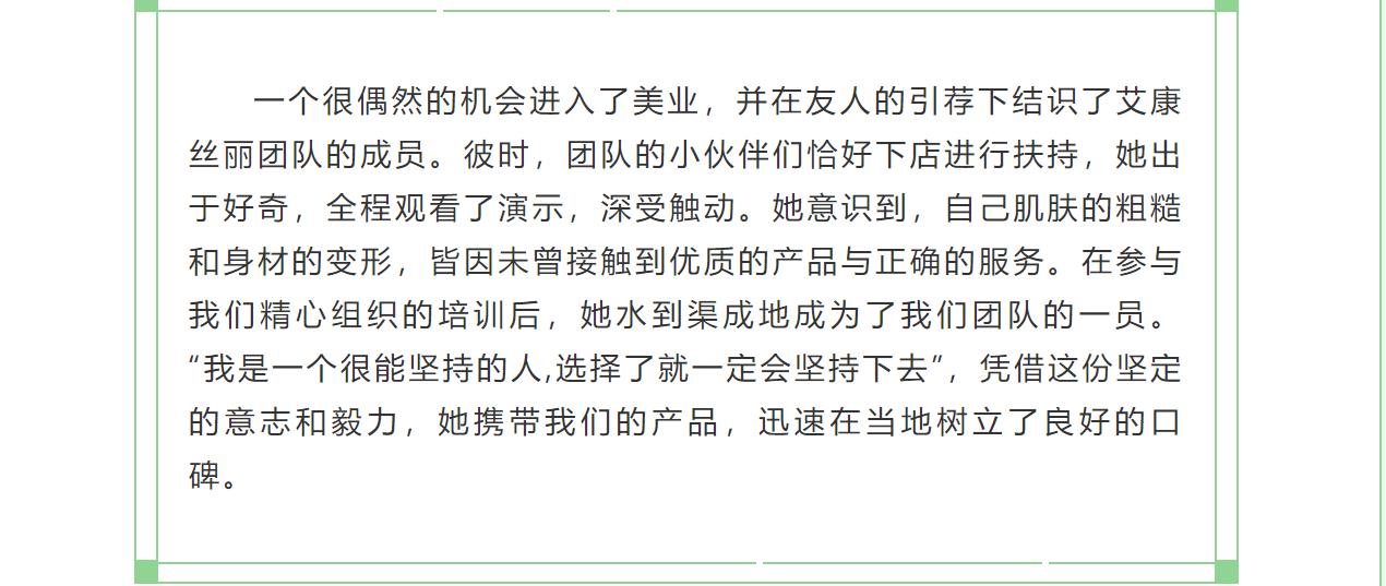 如今越来越多的人对于身体健康的关注度显著提升,同时对于美的追求也日益增强。人们不再犹豫和吝啬于投资自身健康与美丽。她说:“这将是康美行业的春天,对于未来的日子,我充满信心和向往,只要跟着公司走,养家不发愁